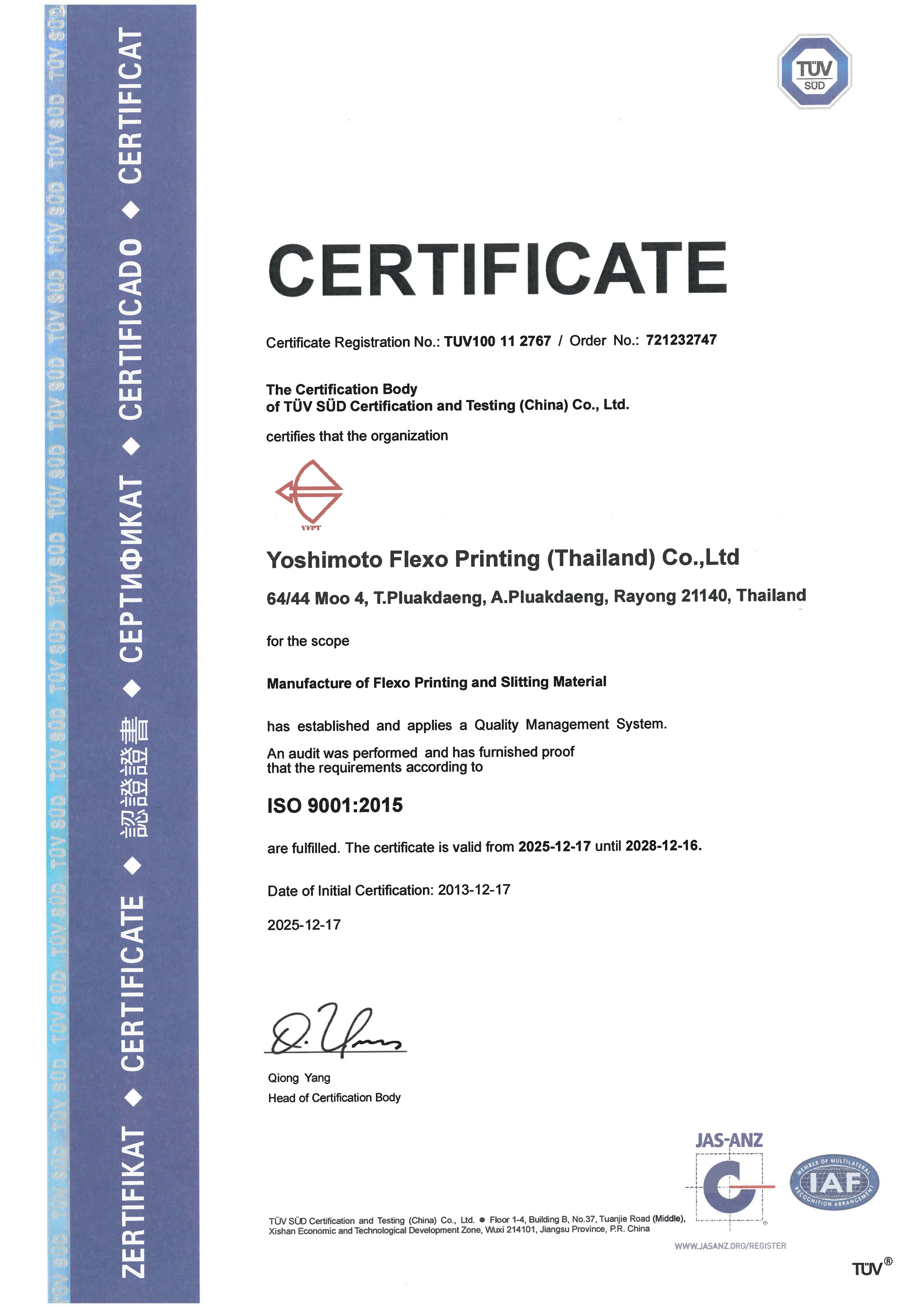 Customer's requirements are implemented in the form of clearly defined quality characteristic table in our development process.